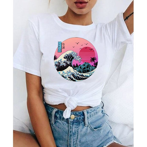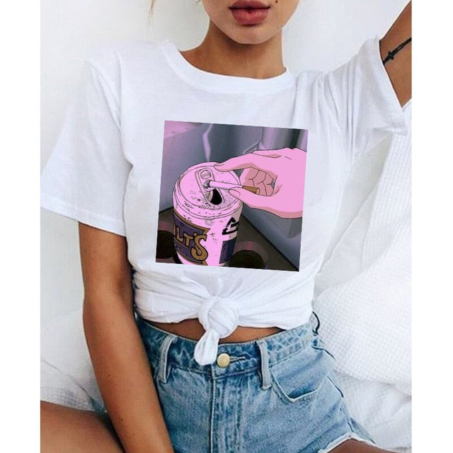 Aesthetic T Shirt 2020 Women Kawaii Harajuku Summer Graphic Tshirt Funny 90s Ulzzang Tops Tee Cartoon Clothing T-shirt Female